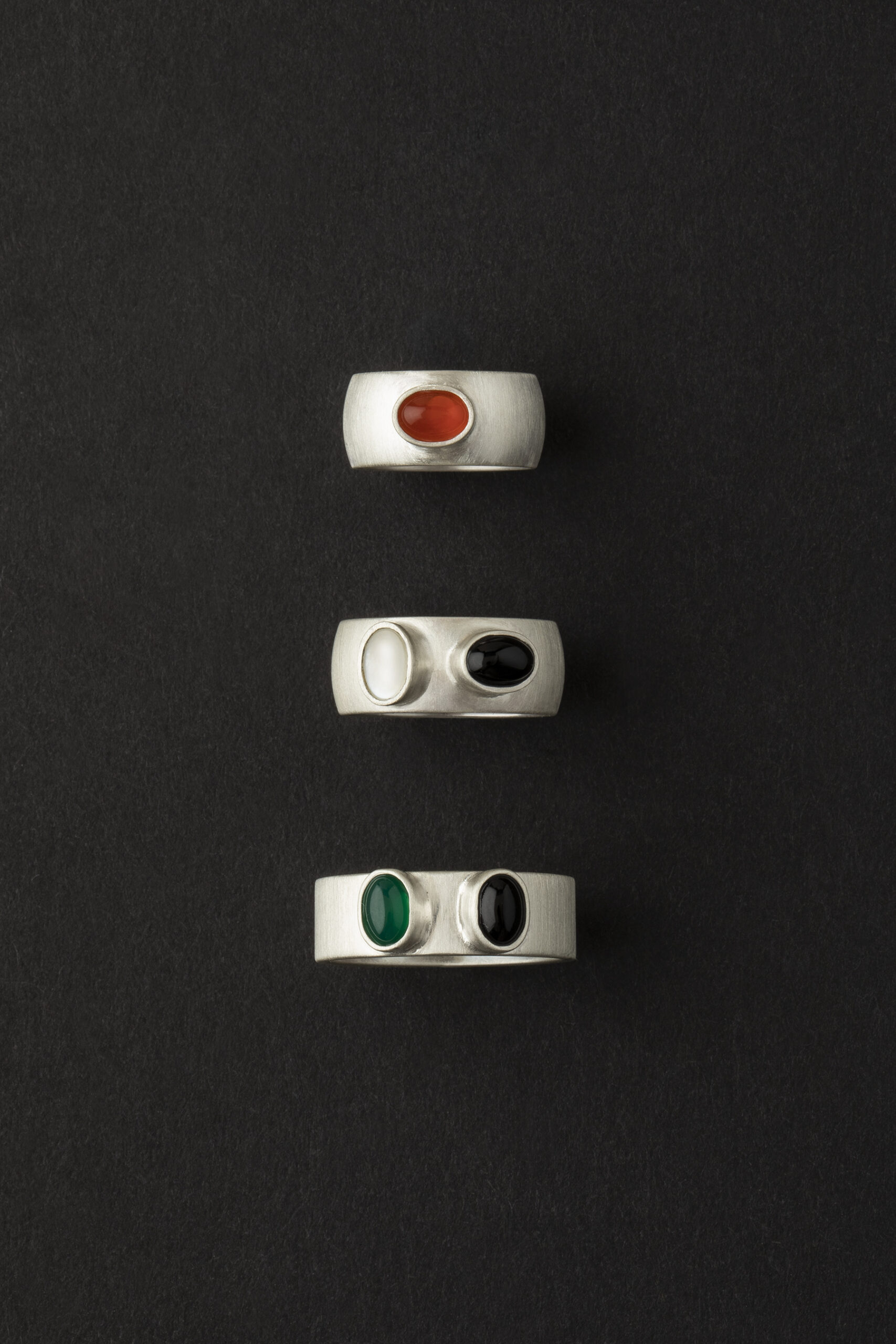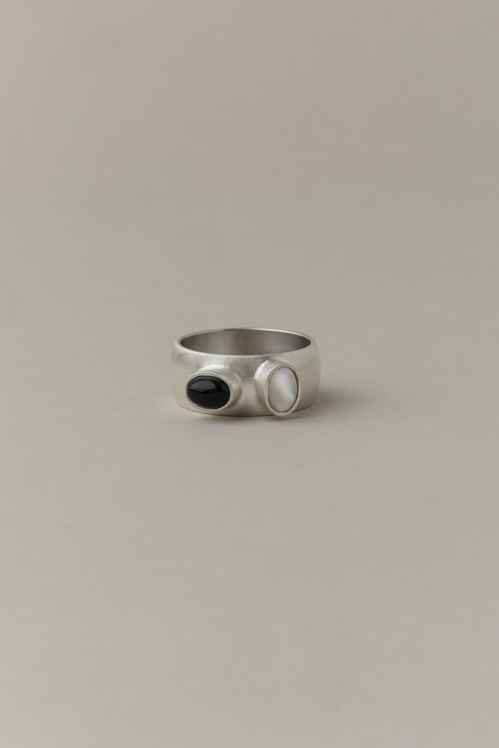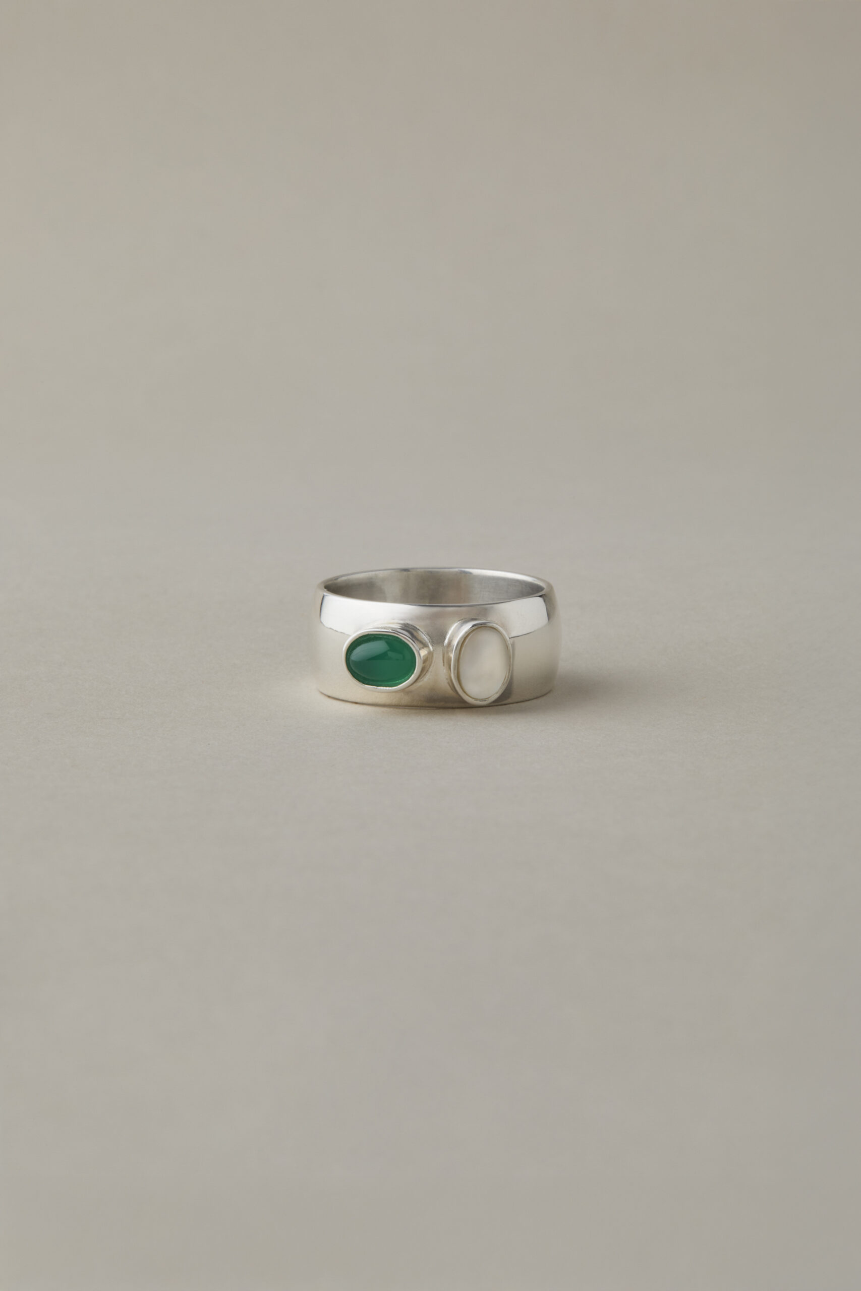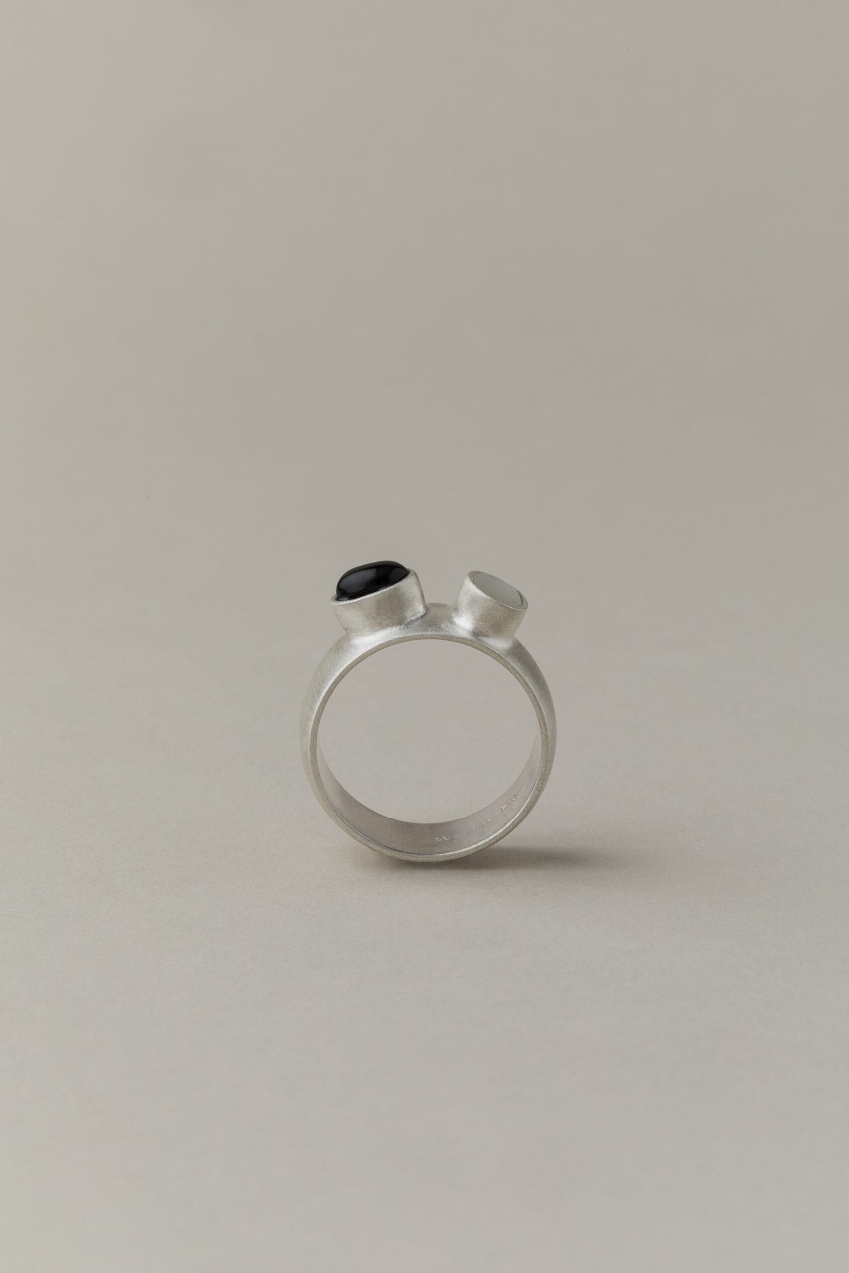 masywny, ręcznie wykonany pierścionek ze srebra próby 925 o wyrazistej, solidnej formie ozdobiony dwoma oczkami, w których osadzone są naturalne kamienie wybierane indywidulanie przez Was. Możliwość samodzielnego doboru kamieni pozwala stworzyć unikatową kompozycję dopasowaną do osobistych preferencji. Pierścionek może zostać wykończony w satynie lub wypolerowany na wysoki połysk.