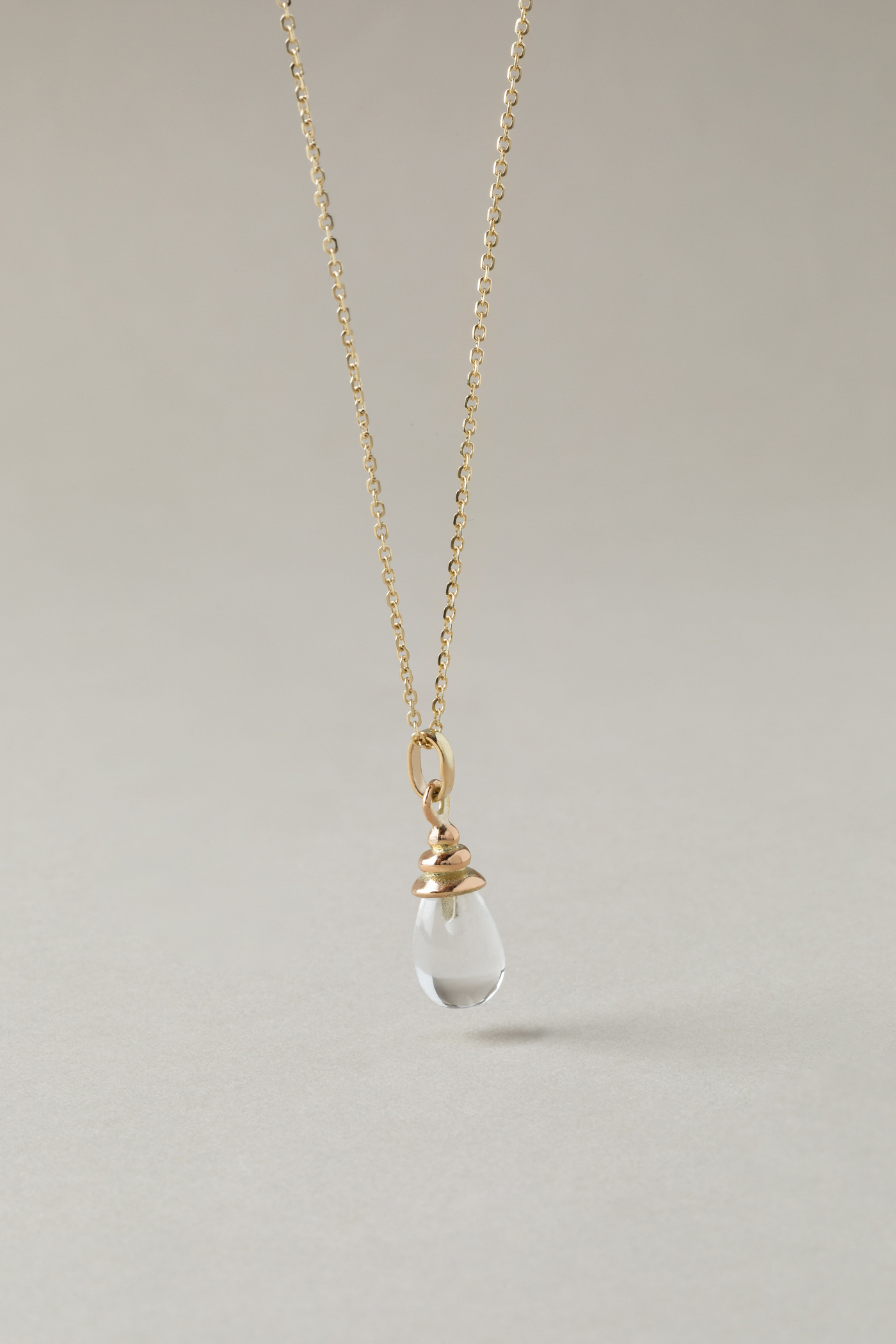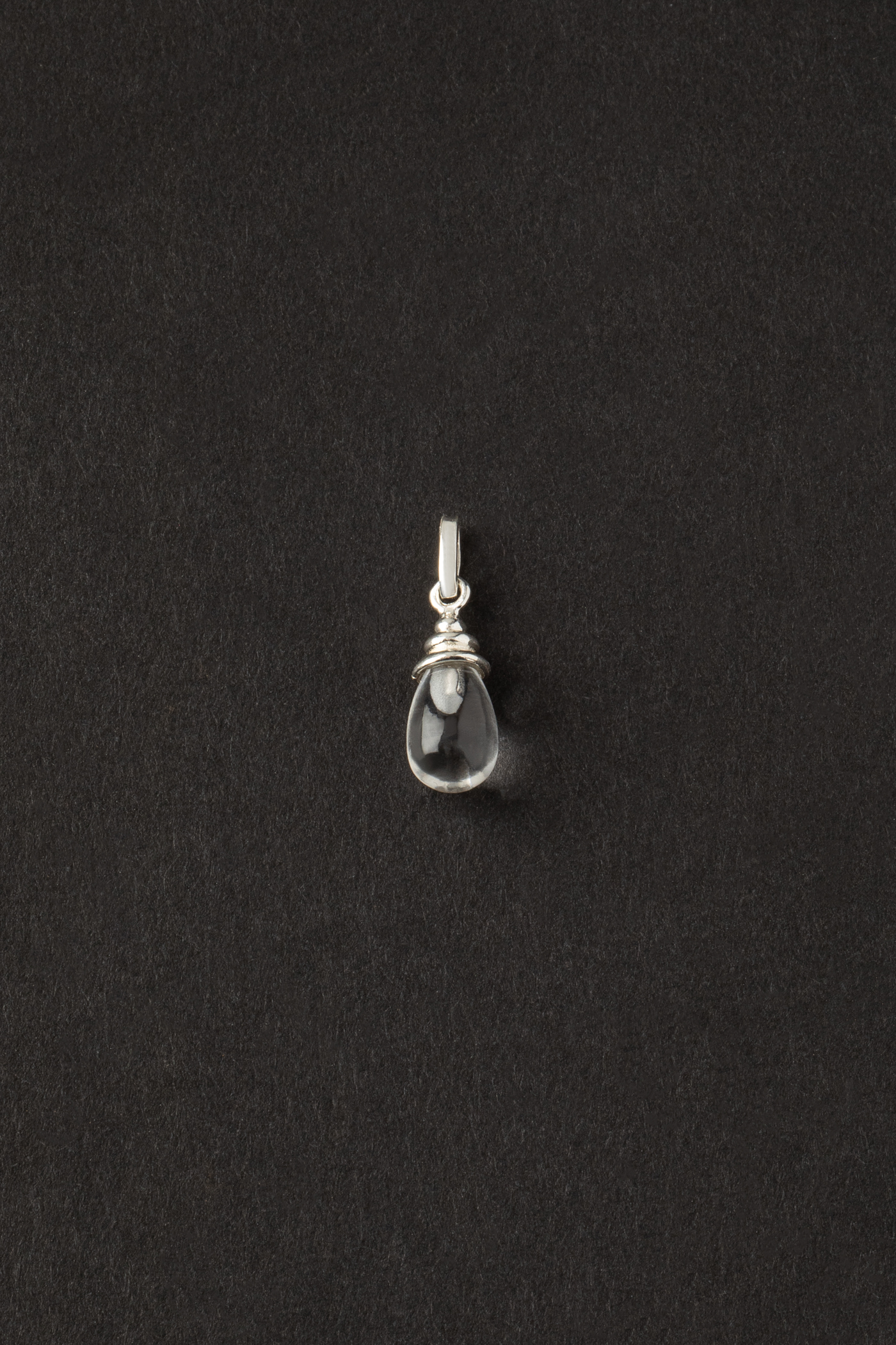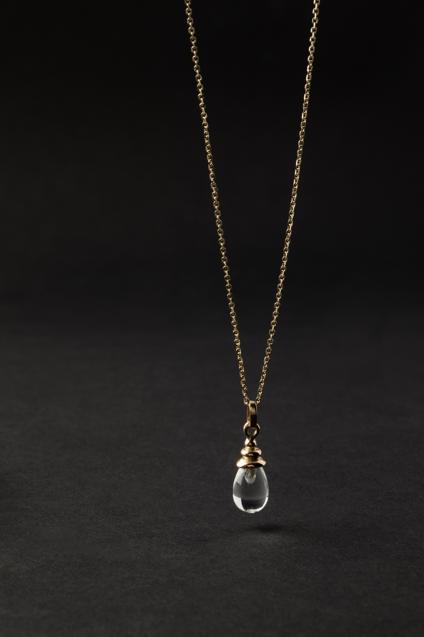 zawieszka o rzeźbiarskim charakterze, w której elegancka plisowana oprawka otula wykonany na zamówienie pod autorski wzór sopel kwarcu górskiego
