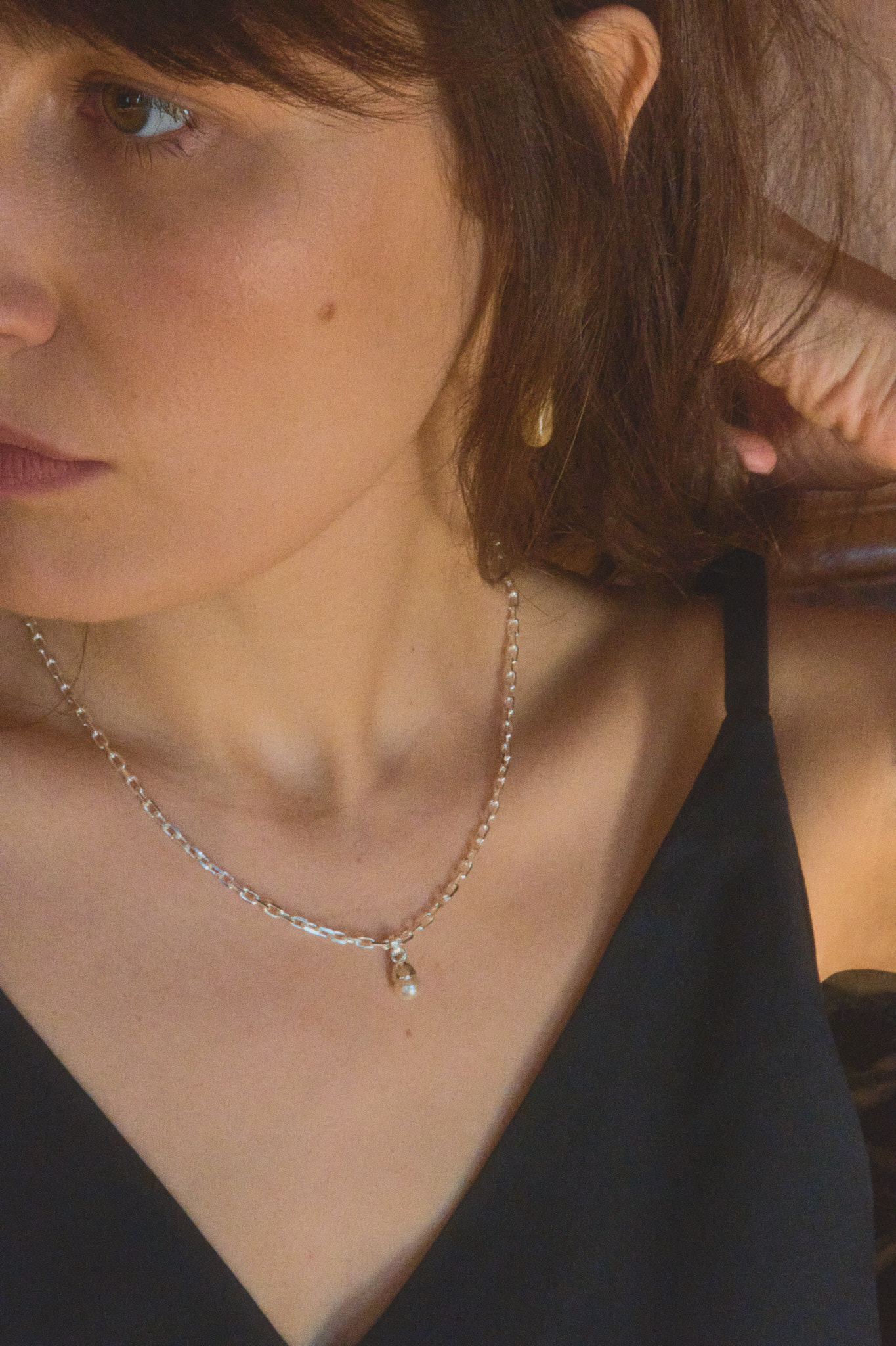 naszyjnik o grubszym splocie z ręcznie wykonaną zawieszką z naturalną perłą słodkowodną w pięknym biało – kremowym kolorze